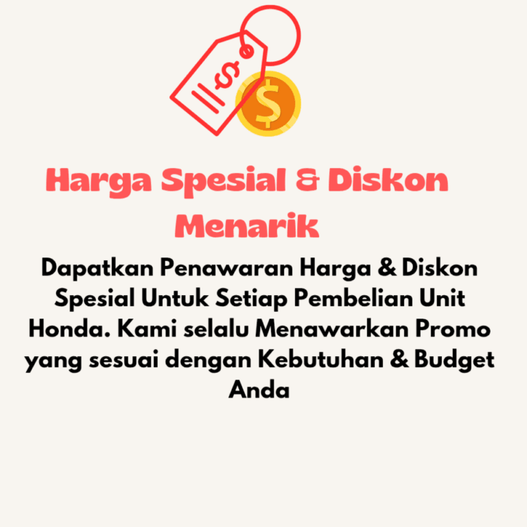 Setiap pembelian Kredit bisa saya bantu pengajuan melalui Mitra Finance/Leasing yang bekerjasama dengan Honda Surabaya Center, Tentunya dengan DownPayment (DP) terjangkau & Angsuran yang terjangkau. Untuk pembelian Cash Harga yang tertera di website kami belum termasuk Promo Diskon atau Cashback yang berlaku. Dan Harga bisa berubah sewaktu – waktu. Silahkan menghubungi Mas Pur Honda untuk detail promo yang berlaku.
